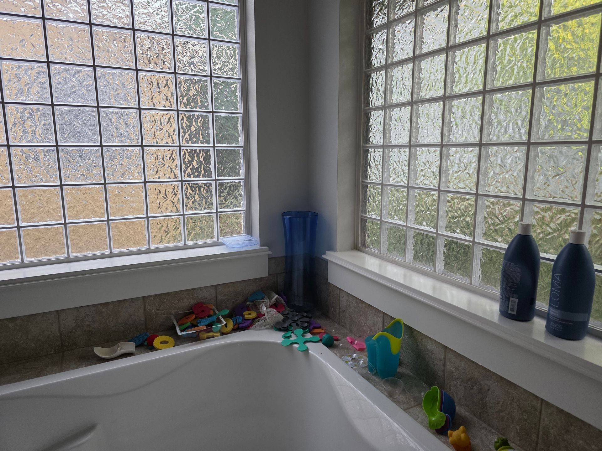 - Tile wall 36" height on the bath tube area (Mitered tiles for window corners (cut at a 45-degree angle) (24” x 24” tile)