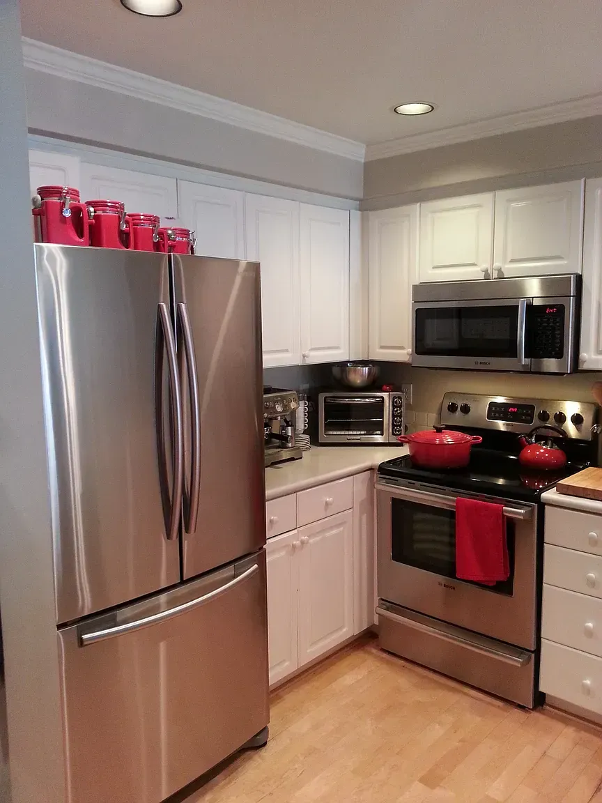 Assemble and Install new kitchen cabinets + install quarts countertop (cost for the kitchen cabinets and quarts separately ) Install back splash - tile up to wall cabinets, install trims Put back appliances - stove, fridge, dishwasher, faucet