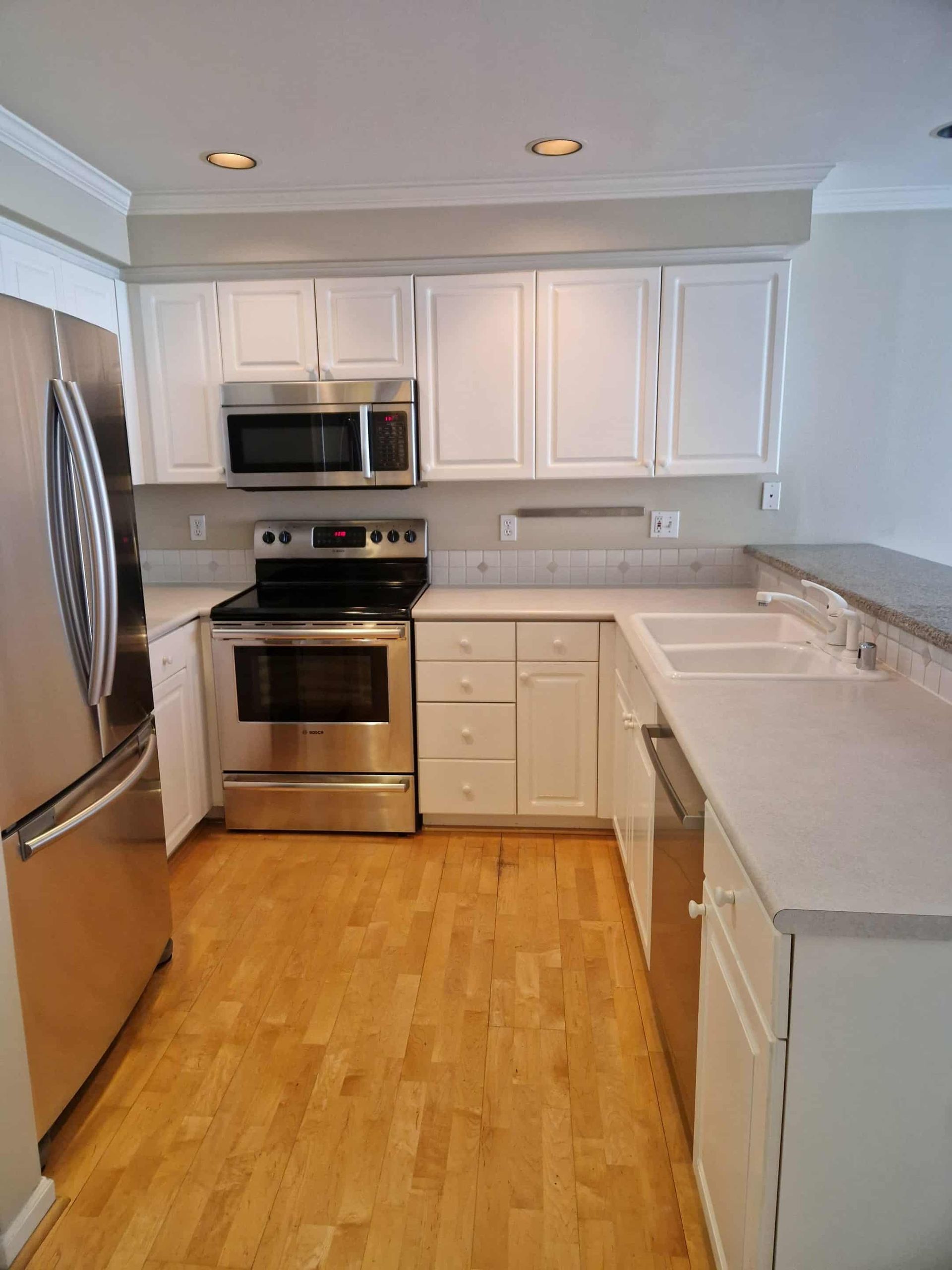This renovation involves a full upgrade of the bathroom, including converting bath tube to the shower, new shower installation , new vanity, new toilet, tiling, accessories, and paint. Kitchen remodeling including new cabinet and countertop installation. Changing carpet to floor in the living room.