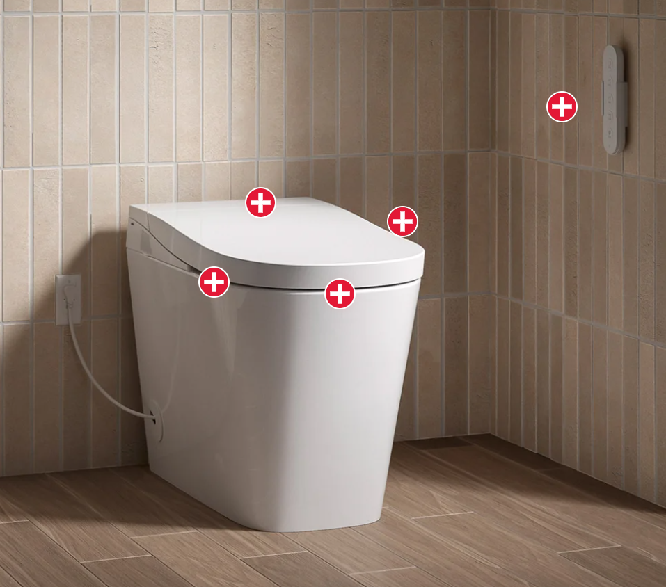 Electrical: Adjust/install wall lights per plan. Adjust / Install two recessed ceiling lights per plan . For Option1 smart toilet outlet is required - see specs on the website.