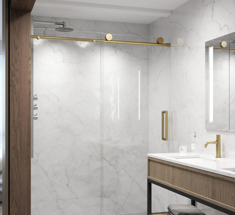 Build 38" x 60" tiled shower with waterproof membrane and slope-to-drain system.