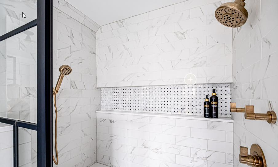 Reconfigure plumbing lines for new shower drain, shower valve, and fixtures. Cap and reroute plumbing as needed for the floating vanity and toilet. Install new shower valve, shower head, and all required fittings.