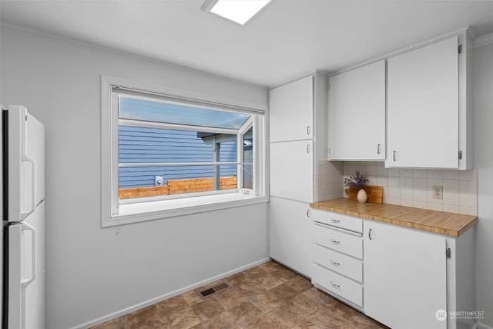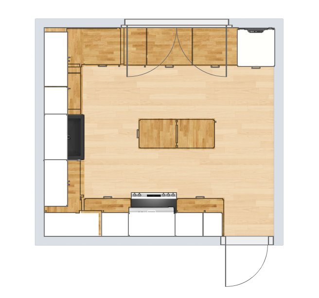 Kitchen Plan. Cabinets: Slim Shaker, White/Wood