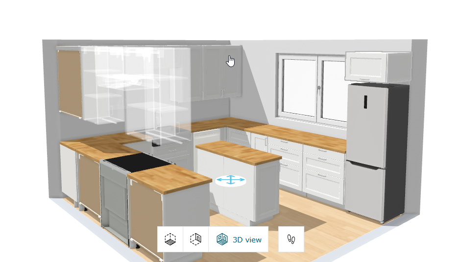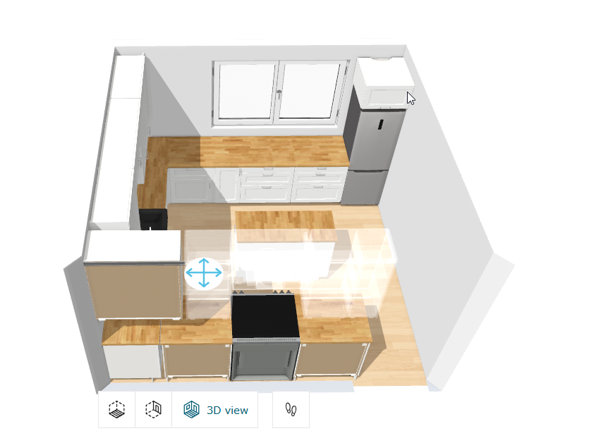 The existing layout is not practical. When you enter the kitchen, the first cabinet blocks the flow, and the space near the window is not utilized efficiently.