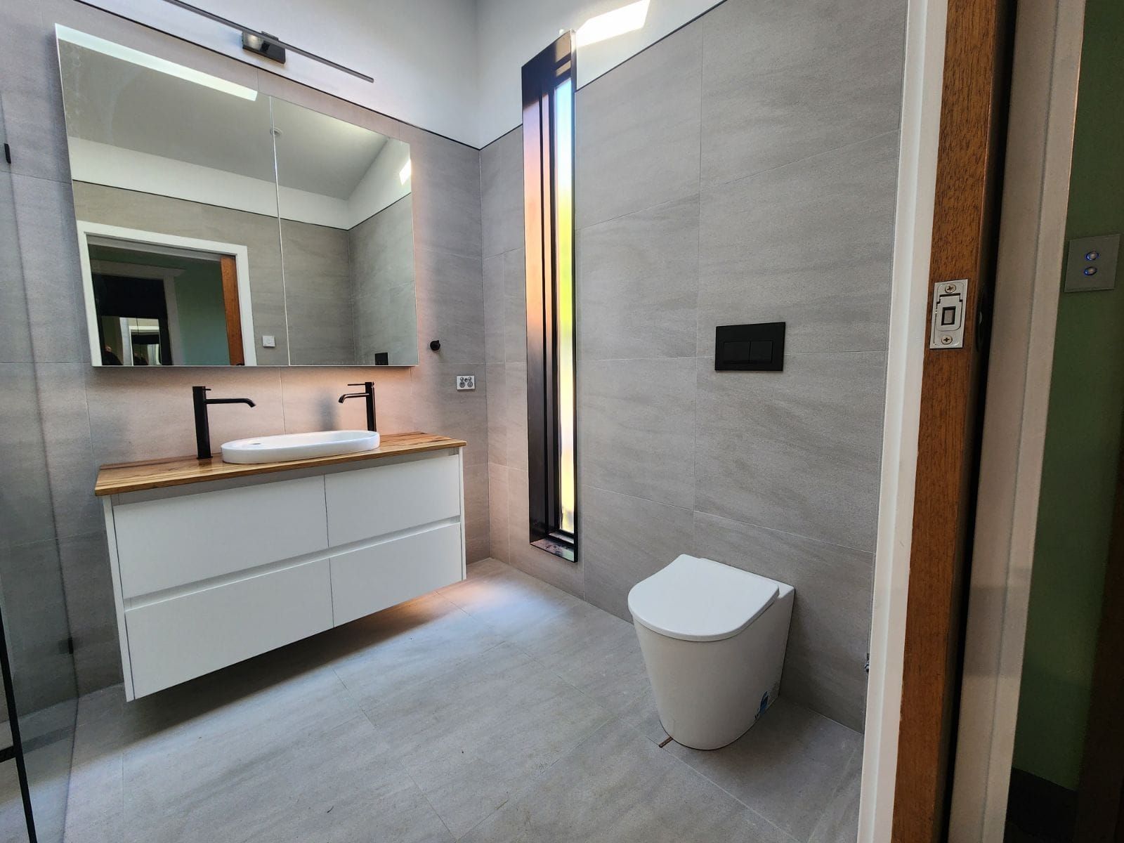 - Mirrors & Hardware: Install mirrors, towel bars, towel rings, toilet paper holders, and robe hooks in bathrooms per plan.