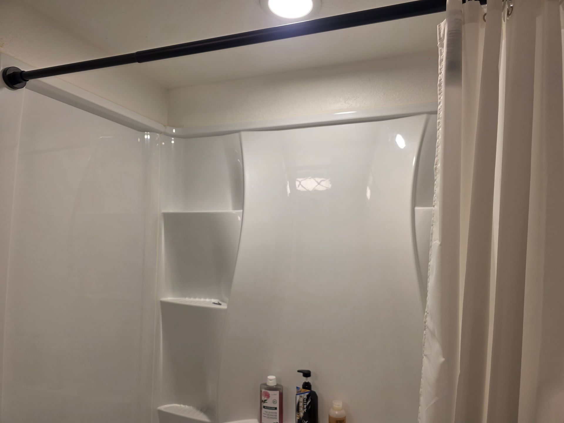 - Outlet for U-shaped LED Plaster-In diffuser channel in the ceiling drywall on front top shower wall.