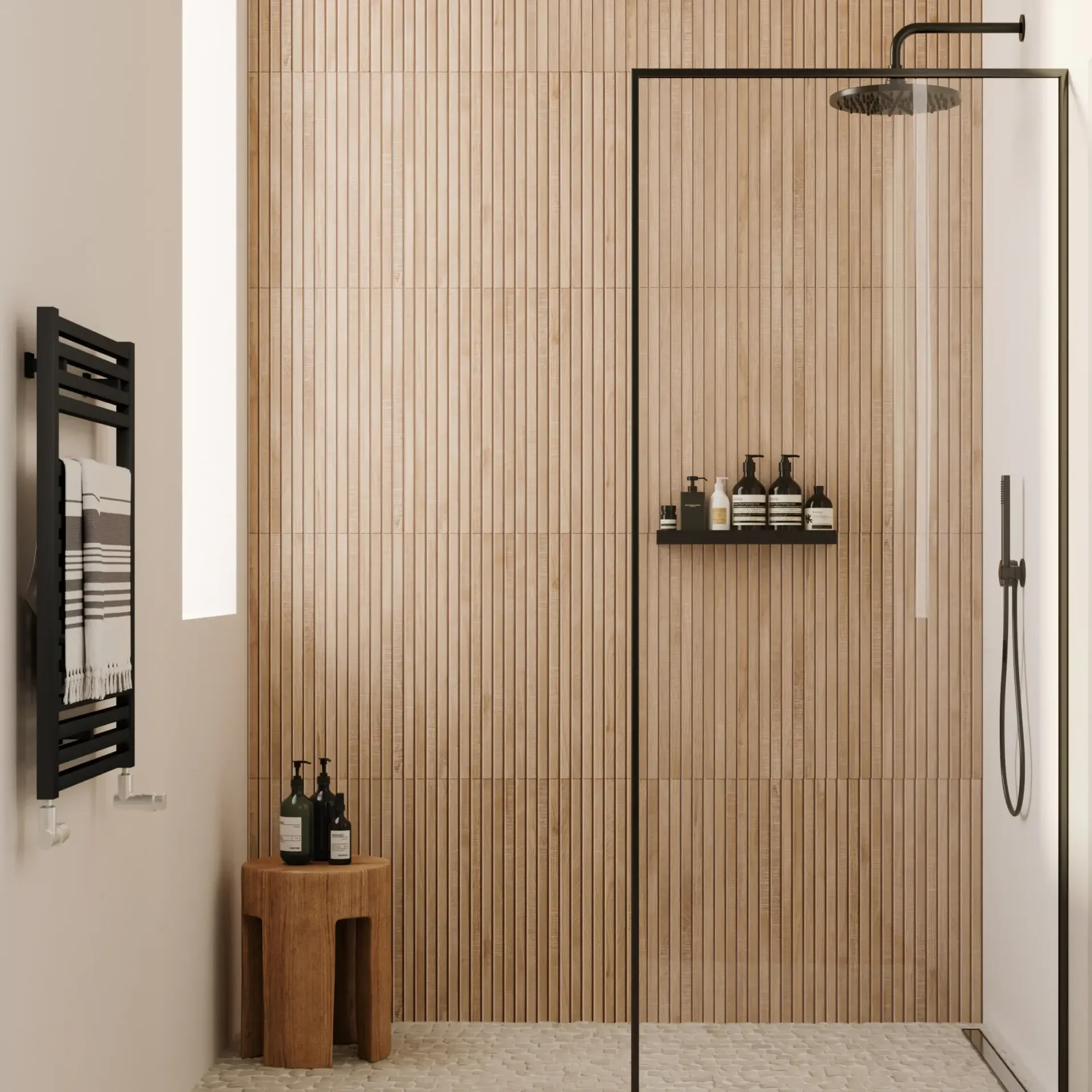 - Wall and Niche Tiling (with LED Strip): Tile the shower area walls. Tile shower Floor. Tile a full width 16" niche, prepared for an integrated top LED strip. For niche use 45-degree miter cuts without trim pieces.