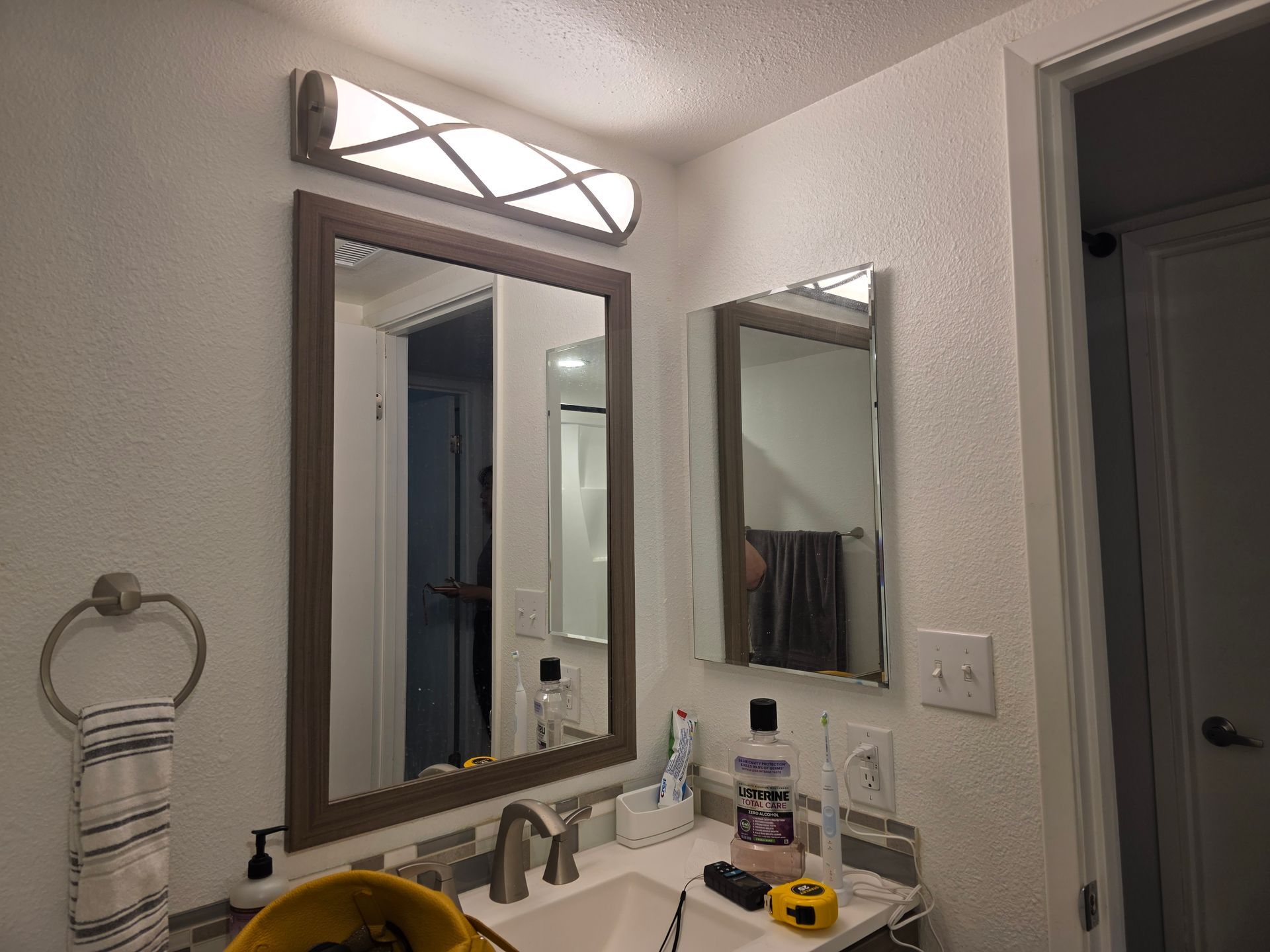 Bathroom Accessories: Install bathroom accessories including towel bar, robe hook, toilet paper holder, etc. Install mirror above vanity and wall light
