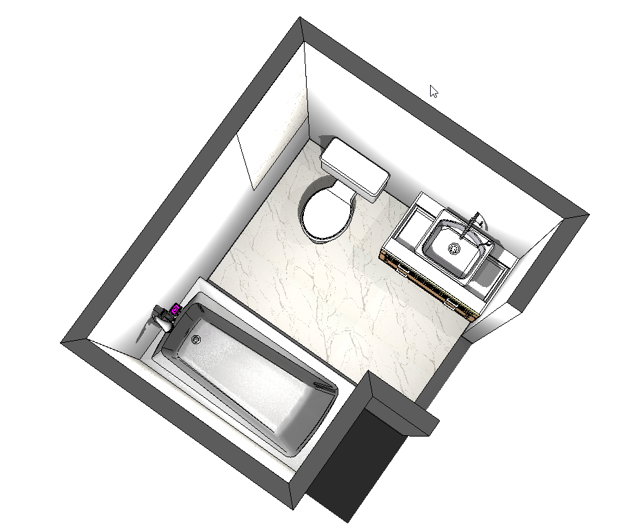 - Install new bathtub, maintaining the existing drain location. Install toilet with smart seat.