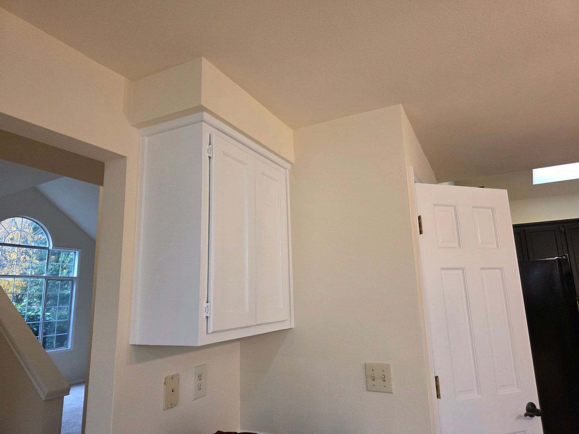 - Demolish and remove two existing walls and bulkhead (soffit) above the wall cabinets in the corner area in the kitchen closet/pantry area to prepare for 2 tall cabinets installation. Close cuts in the ceiling with the drywall, Mud, tape, finish, texture, paint $1500