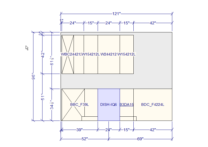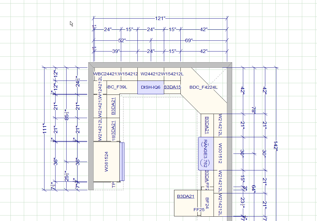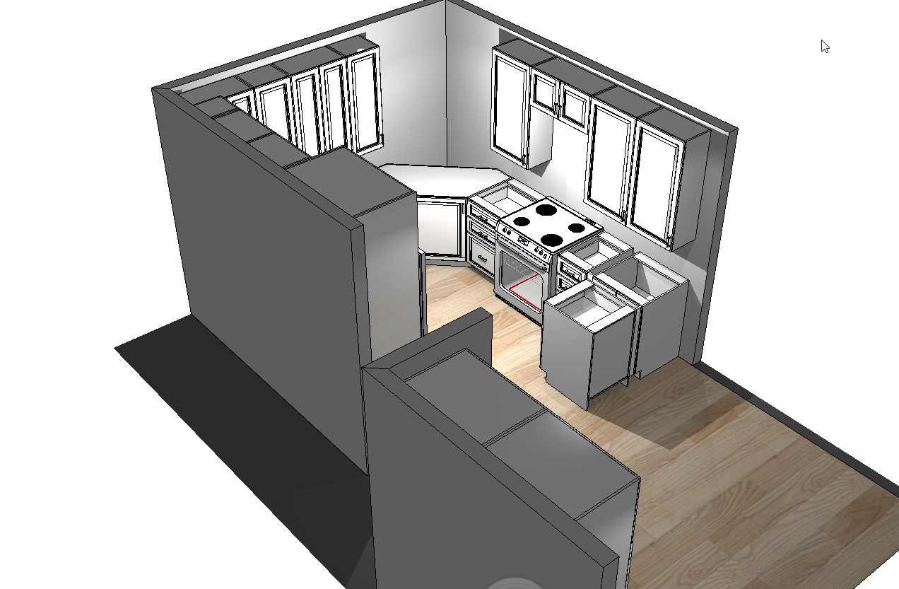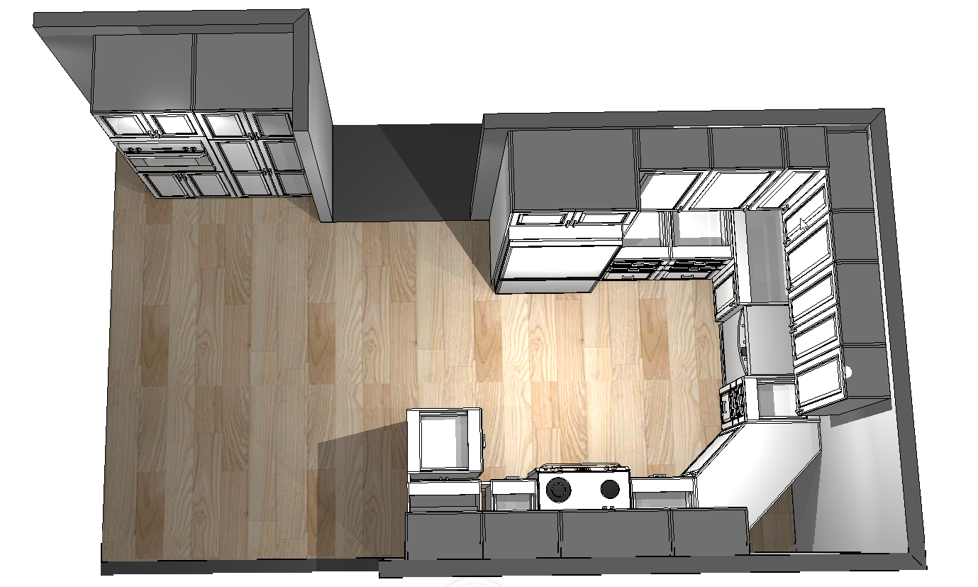 - Remove a bulkhead (soffit) above the wall cabinets in the corner area to create a finished appearance